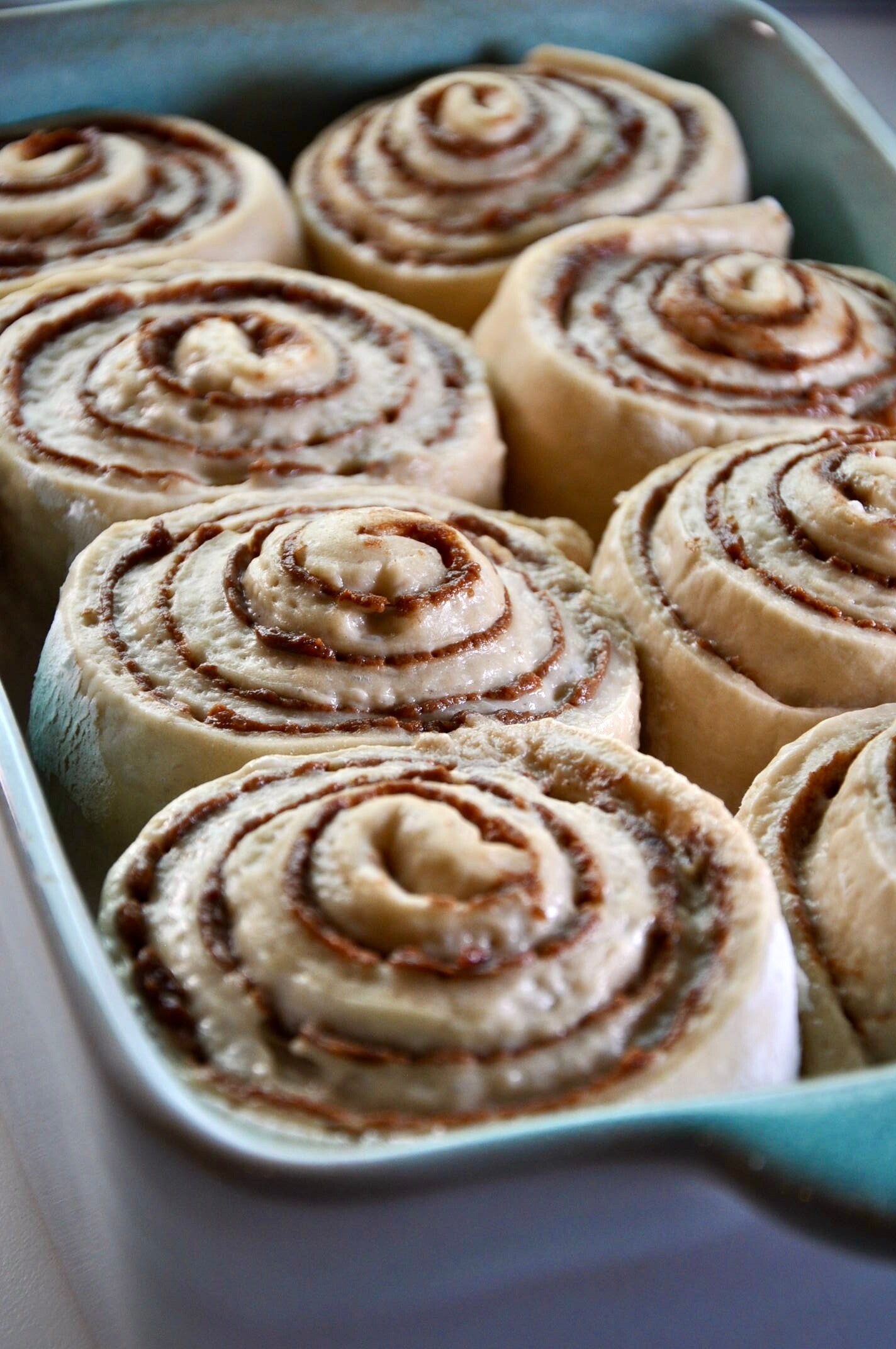 Für den Überguss den Haferdrink mit dem Cashewmus glatt rühren und über die Zimtschnecken gießen. Die Auflaufform dann noch einmal mit dem Küchentuch abdecken und eine Stunde gehen lassen.