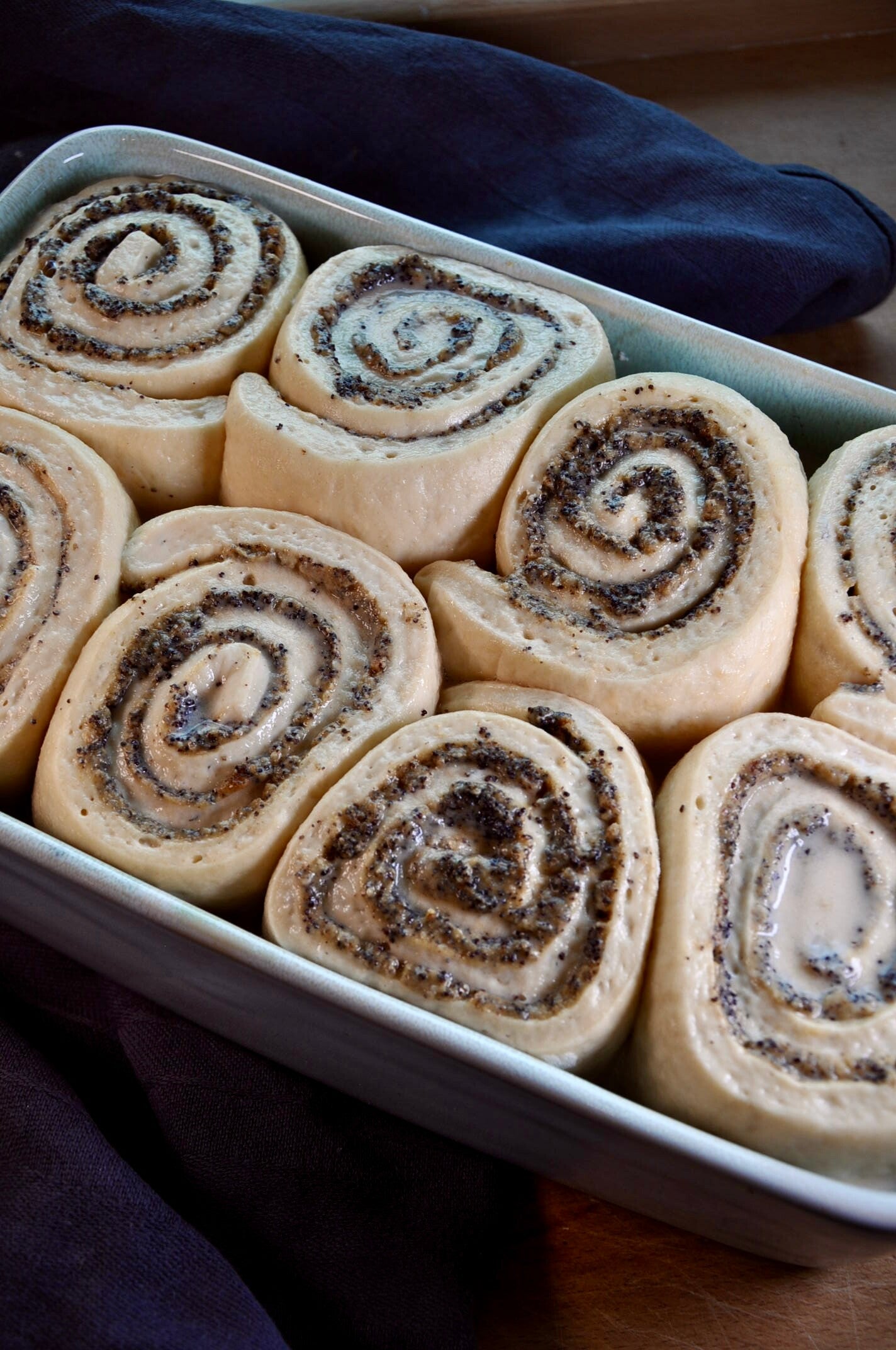 Das Frostig im Kühlschrank ziehen und andicken lassen, bis die Mohnschnecken fertig sind.